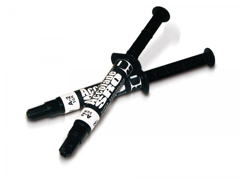 Accolade SRO (Super Radiopaque), flowable composite. with a radiopacity of 320% of aluminum, (simular to titanium)radiographs were never easier to read! Accolade SRO also offers exceptional strength, esthetics and the polishability of StarFlow and Accolade