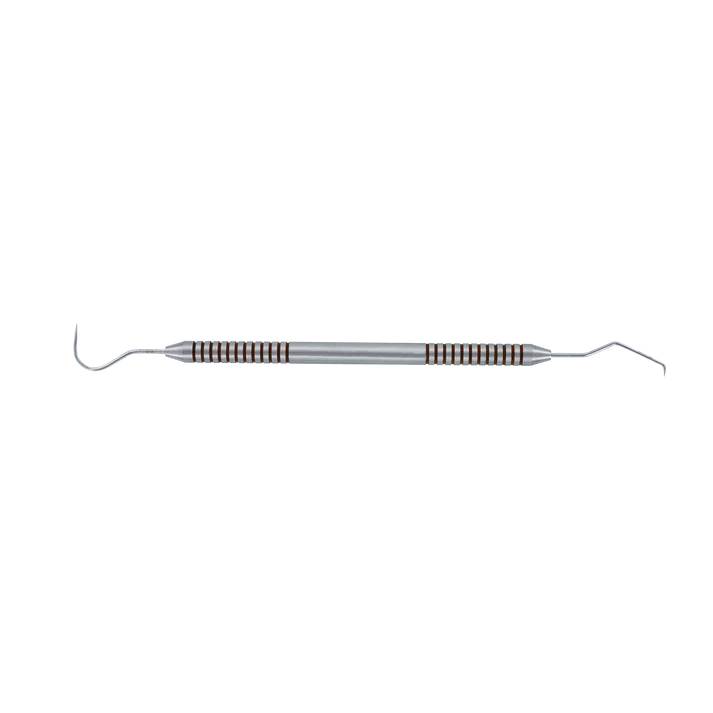One of our most popular explorers. The Explorer 5 is designed for caries and calculus detection, exploration of pocket characteristics, furcations, and restorations. This dual-sided explorer features a Shepards hook #23 end for caries detection and a #17 end for anterior interproximal caries detection. This multifunctional instrument is also used to check posterior interproximal margins and subgingival calculus.