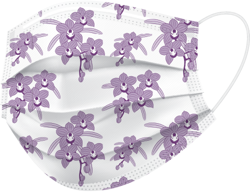 BeeSure Ear-Loop Face Mask with Floral Design Orchid Purple 50/box #BE2320