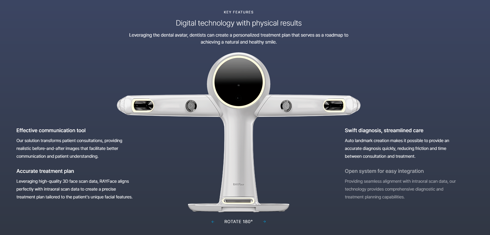 RAYFace is an innovative scanner that reconstructs the patient’s natural smile into high-quality 3D data. Obtain more precise and vivid 3D data with the RAYFace scanner to present a solution that better fits the smile design. Shoots simultaneously within 0.5 seconds from multiple angles.